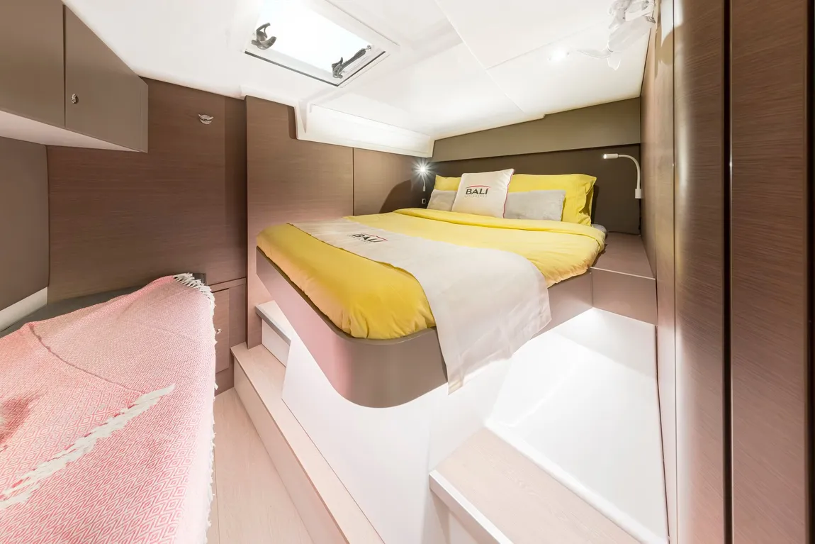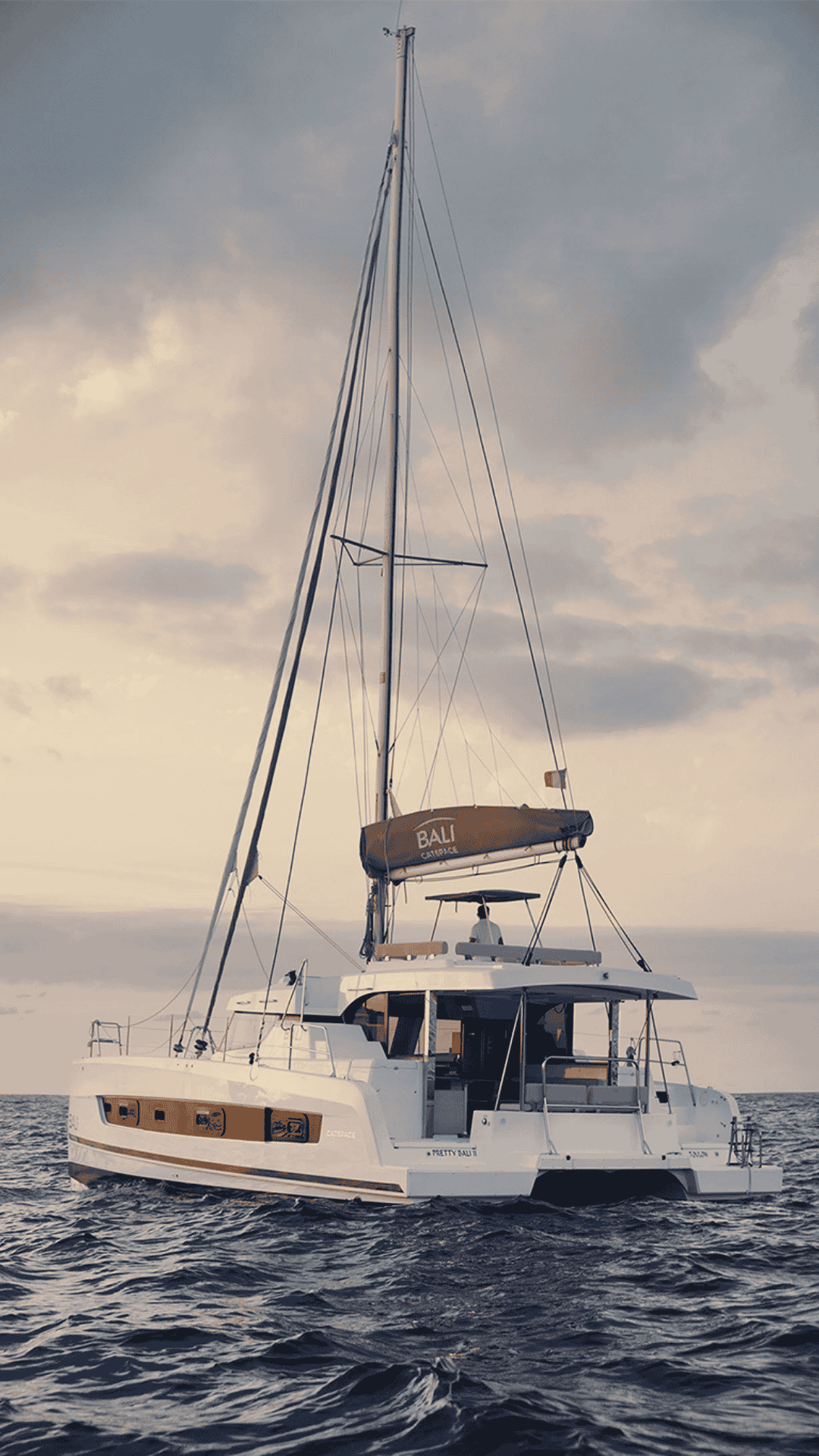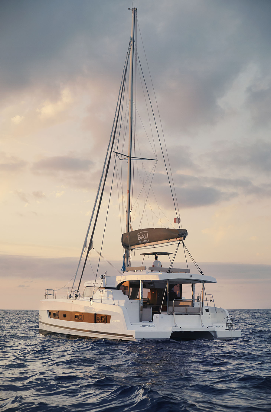 Un catamaran Bali Catspace 4.0 redefinește complet o vacanță pe yacht. Spre deosebire de un velier clasic care se înclină, catamaranul oferă o stabilitate perfectă. Puntea din față este un lounge spectaculos, creat special pentru a savura priveliștea insulelor grecești.